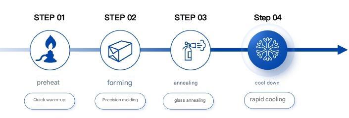 The processing method involves placing flat glass substrates in molds, heating the equipment to soften the glass, and then forming it according to the precise curved shape of the mold cavity. Finally, the formed glass undergoes annealing and cooling to produce curved glass products such as smartphone screens, laptop screens and back covers, automotive central control screens, in-car HUD displays, AR-HUD mirrors, etc.